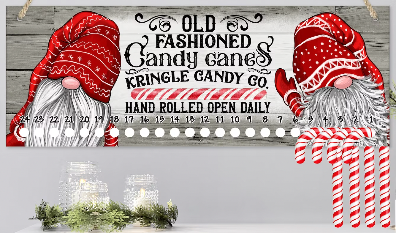 Candy Cane Christmas Countdown Hanging Sign,